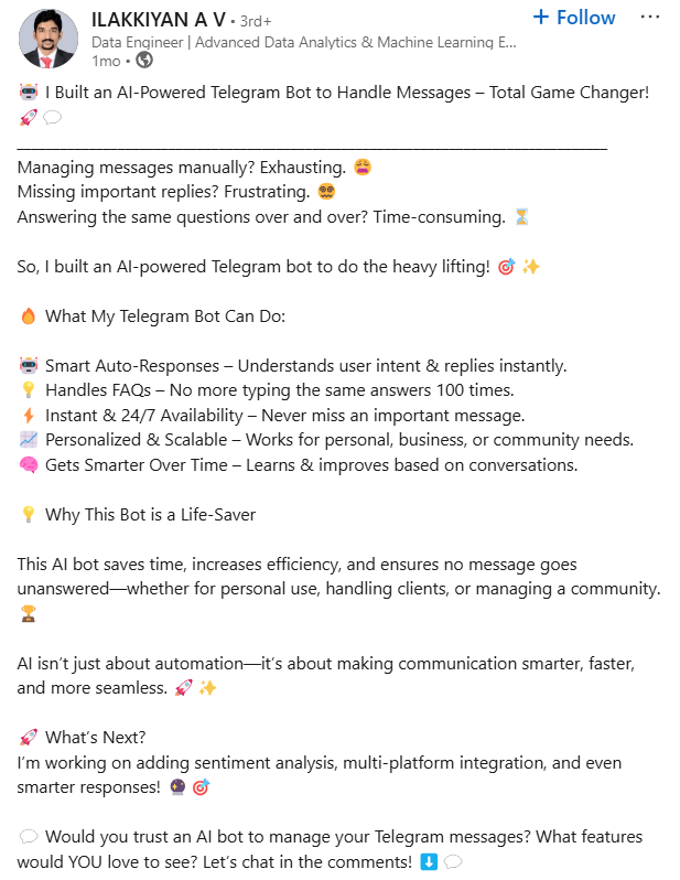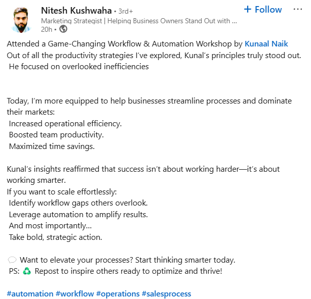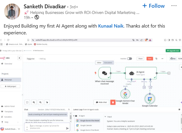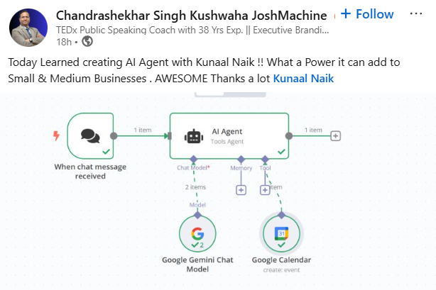 Hi, I am Kunaal Naik, an AI expert and automation strategist, and I have helped businesses and professionals leverage AI without needing complex coding. My journey in AI development, No Code automation, and Python-based AI solutions has allowed me to train hundreds of students and professionals to build AI-driven systems that increase efficiency and create new opportunities.
